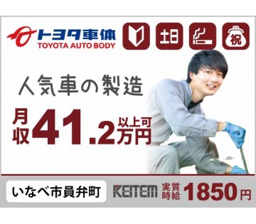 実質時給1850円×祝金5万×未経験OK/人気自動車の製造・組立/2040代活躍/土日休み 研修充実 月41.2万超可/月収41.2万円
