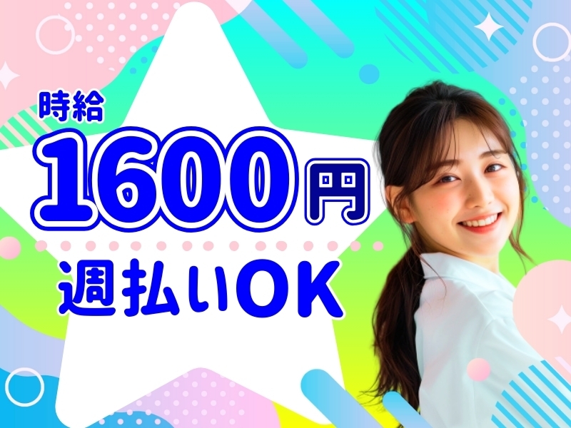 時給1600円〜1600円 ※週払い(規定あり)利用OK!(但し、週払い制度は初回2ヵ月間のみ、3ヵ月目以降は月払い制になります。利用についてはご本人様からお仕事紹介時に申請があった場合のみとなります。)
