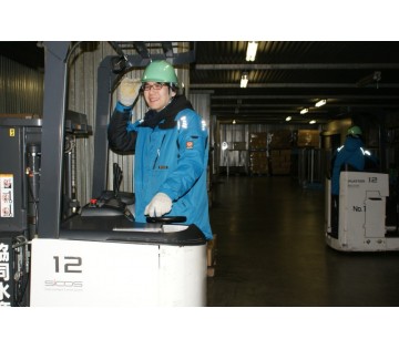 リーチリフトを用いての食料品の入荷・格納・補充作業
