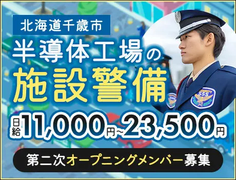 Rapidus第二次オープニング募集工場施設警備高日給2.3万~巡回バスあり(43-02A)