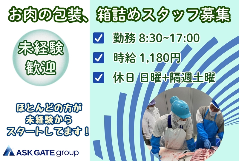 日払い・週払い可シンプル作業で未経験OK車通勤OK日曜休み土曜日は月2回程度お休みです