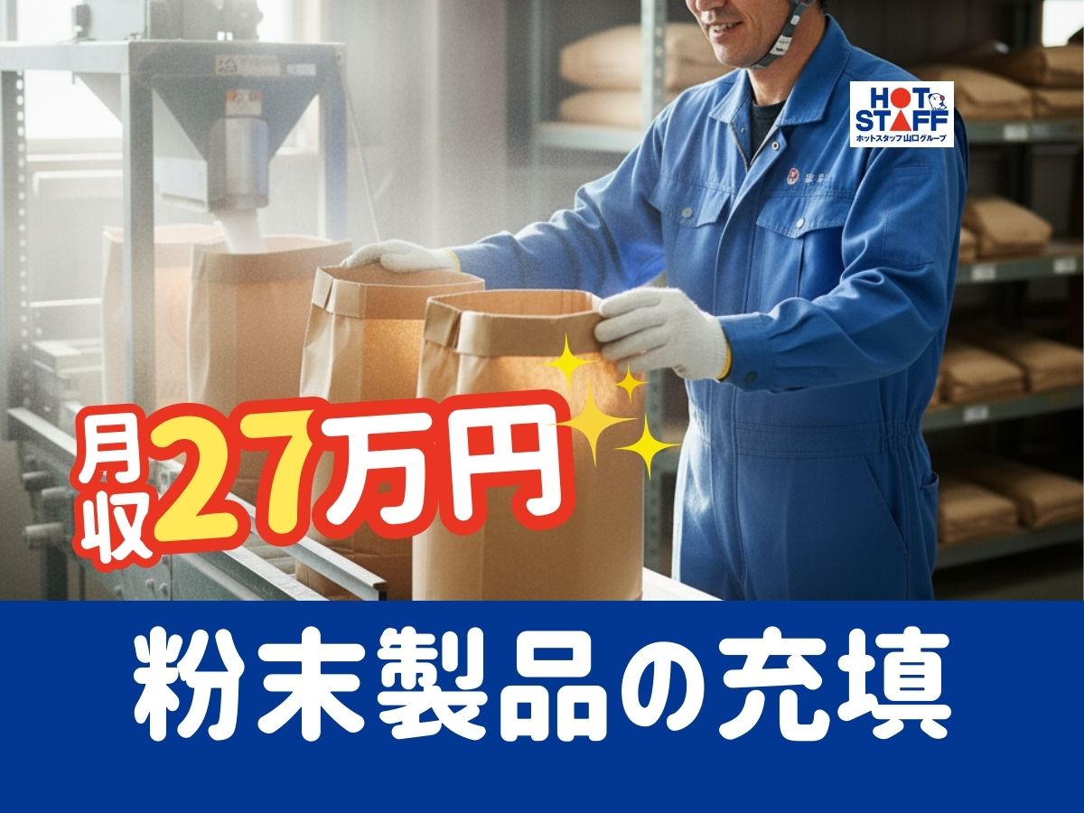 【その他(軽作業・工場・建築・土木系)】粉末製品の充填・包装 \20~40代活躍中/日払いOKスグにお給料GET時給1,500円~1,875円/粉末製品の充填・包装